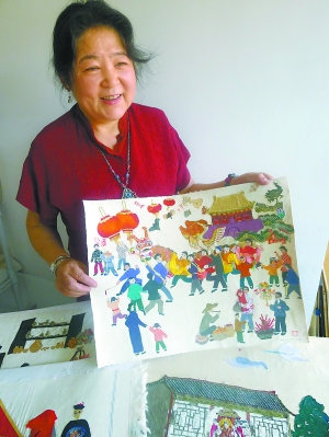 Using pieces of cloth instead of a pen, Shao expresses her homesickness in her “Beijing diary”. From great amounts of leftovers, Shao carefully collects the suitable materials in terms of colors, textures and cloth marks that fitted the themes. “When I first saw an end of Indian silk, the color of which is similar to the Chinese red wall, I gathered some odds and ends.” The folk customs, neighborhoods and people lived in traditional courtyards and Hutong of old Beijing concretized on the pictures. It usually took her a month to finish a cloth patch picture. A Chinese French painter Chen Dehong praises Shao’s work with a quotation of famous Chinese painter and activist Xu Beihong- “Ning Zhuo Wu Qiao”, which means that it is better be clumsy-real work rather than an exquisite duplication. He added, “Shao's works are of creativity and sentiments. They are unique in terms of the theme, the subjects and contents which cannot be copied.” Shao's colleagues and boss encouraged her to hold a personal exhibition.