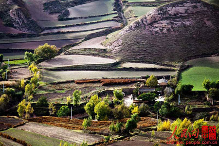 The unique landform and autumn scenery of the back hill of Huoshi Village located in Liupan Mountain, 15 kilometers northeast from Xiji County, north China's Ningxia Hui Autonomous Region. (chinapic.people.com.cn)