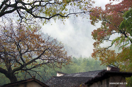 Photo taken on Nov 10, 2012 shows the scenery near Tachuan scenic spot in the Huangshan Mountain area, east China's Anhui province. The beautiful scenery of Huangshan Mountain in the early winter has attracted many tourists.[Photo/Xinhua]