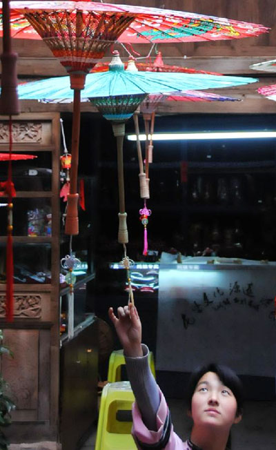 A worker processes oil-paper umbrellas at a workshop in Xixiu District of Anshun City, southwest China's Guizhou Province, Nov. 12, 2012. Made of oiled paper and bamboo frame, oil-paper umbrella is a traditional Chinese handicraft. The skills of making oil-paper umbrellas were introduced to Guizhou in early Ming Dynasty (1368-1644). (Xinhua/Huang Yong)