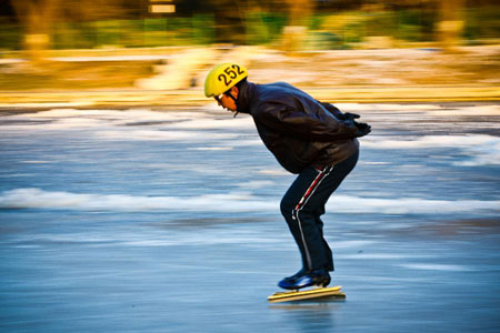 A skater enjoys himself upon the ice in Taoranting Park in Beijing, capital of China, Dec. 17, 2012. (Xinhua/Zhang Cheng)