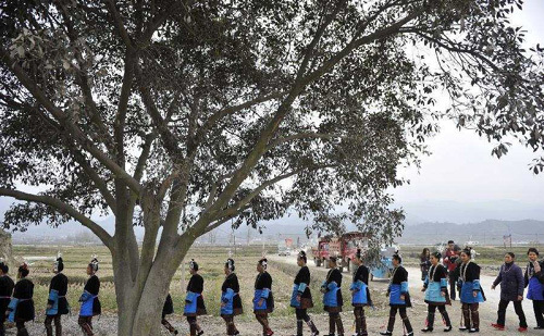 People of the Dong ethnic group take part in an ancestor-worshipping ritual during the Sama Festival in Rongjiang County, southwest China's Guizhou Province, Dec. 19, 2012. As a part of the ongoing celebration of the Sama Festival, an ancient traditional festival commemorating the woman ancestor, a ritual was held on Wednesday to worship a heroine ancestor of the group named Sama. The festival will last untill Dec. 20.