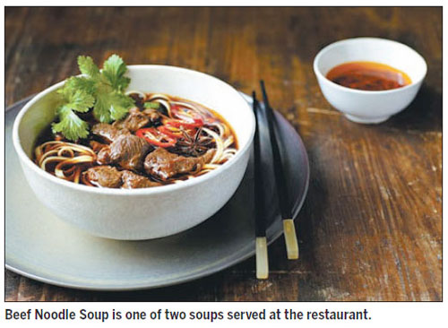 The menu is small and select. There are two soups, beef noodle and tofu; four kinds of jiaozi, including the Beijing classics of beef and spring onion, pork and Chinese greens, vegetable and king prawn; a handful of side dishes and a drinks menu of tea and, of course, Tsingtao beer.