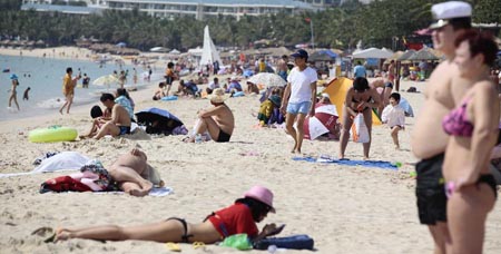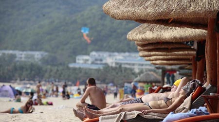 Tourists play in water at a beach in Sanya, a popular winter tourism destination in south China's Hainan Province, Jan. 5, 2013.