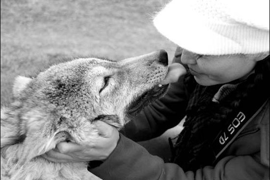 "My wolf taught me a real spirit of self-reliance and to respect individual features," she says. Though she hasn't mingled with the wolf for months, she can still mimic its grunts and howls during the interview.