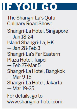 Six Arts Appetizers from the Kong Family repertoire will be featured at the Shangri-La's Qufu Culinary Road Show. Provided to China Daily