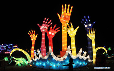 A young girl views festive lanterns during a lantern show in Changsha, capital of central China's Hunan Province, Feb. 5, 2013. The lantern show was held to greet the upcoming Spring Festival, or the Chinese Lunar New Year, which falls on Feb. 10 this year.