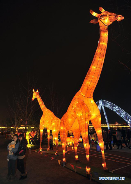 Visitors pose for photos with festive lanterns during a lantern show in Changsha, capital of central China's Hunan Province, Feb. 5, 2013. The lantern show was held to greet the upcoming Spring Festival, or the Chinese Lunar New Year, which falls on Feb. 10 this year.