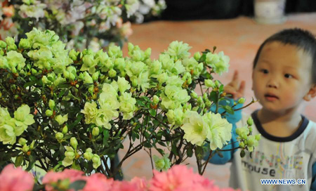 A child views azalea flowers at the first Fuzhou Azalea Cultural Festival in Fuzhou, capital of southeast China's Fujian Province, March 19, 2013. The festival kicked off on Tuesday, displaying over 100 species of azalea flowers.