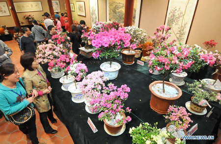 Visitors view azalea flowers at the first Fuzhou Azalea Cultural Festival in Fuzhou, capital of southeast China's Fujian Province, March 19, 2013. The festival kicked off on Tuesday, displaying over 100 species of azalea flowers.