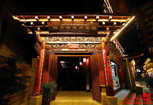 In Shangri-La, there's an old town named Du Kezong, which means the white rock city in Tibetan language. It is the best preserved and the largest Tibetan folk group in China, and it also served as a hub on the tea-horse road. Du Kezong was built at the mountain foot, and the road here were bumpy. Visitors can still see deep hoof marks of horses on the stone road.