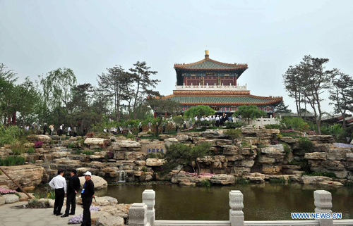 Photo taken on May 18, 2013 shows a view of Beijing Park in the 9th China (Beijing) International Garden Expo in Beijing, capital of China. The expo opened in southwestern Fengtai district in Beijing on Saturday and will last till Nov. 18, 2013. Garden designs from 69 Chinese cities and 29 countries will be presented. (Xinhua/Li Wen)