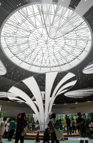 Visitors watch during the 9th China (Beijing) International Garden Expo in Beijing, capital of China, May 18, 2013. The expo opened in southwestern Fengtai district in Beijing on Saturday and will last till Nov. 18, 2013. Garden designs from 69 Chinese cities and 29 countries will be presented. (Xinhua/Yang Le)
