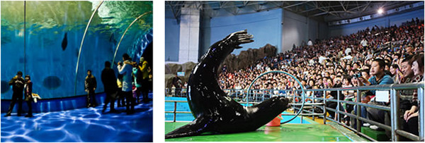 It has the largest ocean-themed theater which can accommodate 2,800 people. Whales, dolphins, sea lions and walruses all perform together. A lot of animals participate in an animal-themed Olympic Games. Children can certainly have a happy holiday watching the marine animals perform. [Photo/Provided to Chinadaily.com.cn]