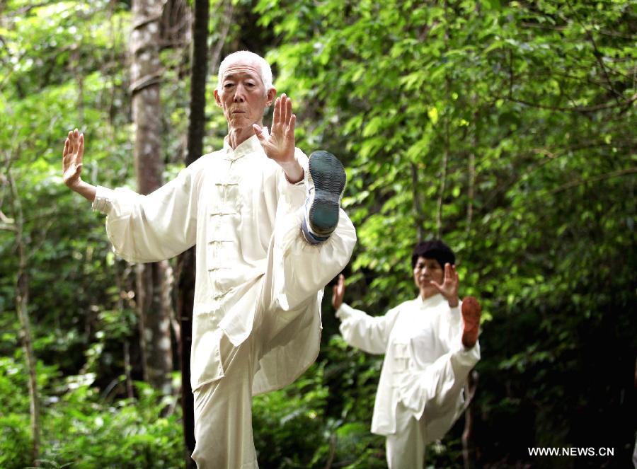 Tachi lovers practise at the Yangling National Forest Park in Chongyi county, East China's Jiangxi province, May 29, 2013. Chongyi county, located in Southwest Jiangxi province, is well-known for its high forest coverage rate, which reaches 88.3 percent, and its slower pace of life.[Photo/Xinhua]