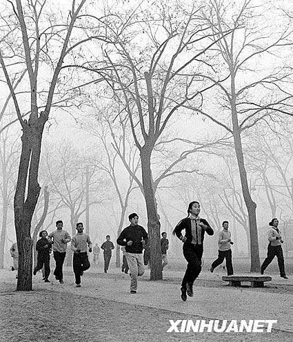 People running on Chang'an Avenue in Beijing, January 3, 1957