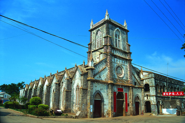 The Catholic church in Shengtang village on Weizhou Island was built using the island's volcanic rocks and coral. Provided to China Daily