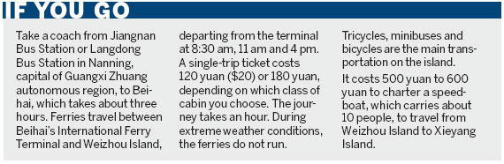 From Weizhou Island you can see Xieyang Island, which is covered with acacias and cactus flowers. It takes about 30 minutes to reach and offers an even quieter experience, as there are no restaurants or hotels.