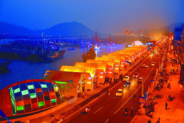 Outdoor restaurants line the seafront in Shenjiamen offering varieties of marine delicacies. Provided to China Daily