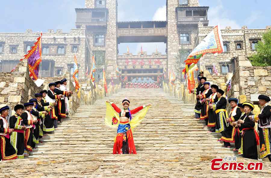 People of the Qiang ethnic group celebrate Wari'ezu Festival in Maoxian County, Southwest China's Sichuan Province, June 12, 2013. For thousands of years, there has been a convention among Qiang people, namely, to offer sacrifices to Sister Salang, the Goddess of Dance and Song. Every three years, Qiang people will get together and hold Wari'ezuconventional activities from May 3rd to May 5th in the lunar calendar. Since it is the only convention for Qiang females, it is also named by local people as Women's Day. (CNS/An Yuan)