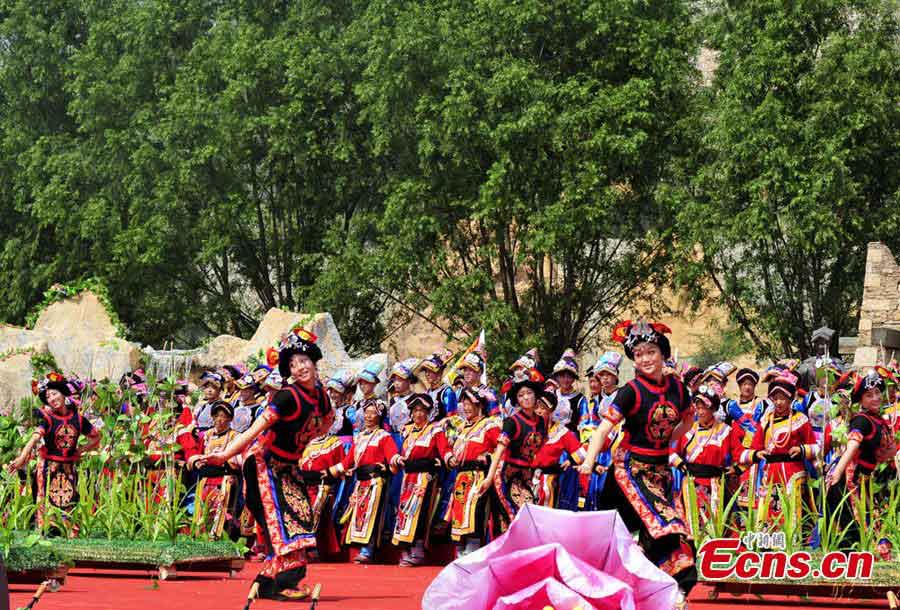 People of the Qiang ethnic group celebrate Wari'ezu Festival in Maoxian County, Southwest China's Sichuan Province, June 12, 2013. For thousands of years, there has been a convention among Qiang people, namely, to offer sacrifices to Sister Salang, the Goddess of Dance and Song. Every three years, Qiang people will get together and hold Wari'ezuconventional activities from May 3rd to May 5th in the lunar calendar. Since it is the only convention for Qiang females, it is also named by local people as Women's Day. (CNS/An Yuan)