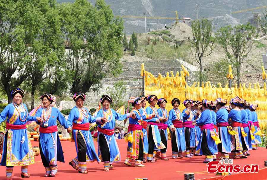 People of the Qiang ethnic group celebrate Wari'ezu Festival in Maoxian County, Southwest China's Sichuan Province, June 12, 2013. For thousands of years, there has been a convention among Qiang people, namely, to offer sacrifices to Sister Salang, the Goddess of Dance and Song. Every three years, Qiang people will get together and hold Wari'ezuconventional activities from May 3rd to May 5th in the lunar calendar. Since it is the only convention for Qiang females, it is also named by local people as Women's Day. (CNS/An Yuan)