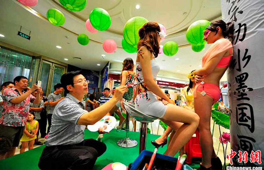 A body painting show at a shopping mall in Zhangjiajie City of Central China's Hunan Province. (Photo: CNS / Shao Ying)
