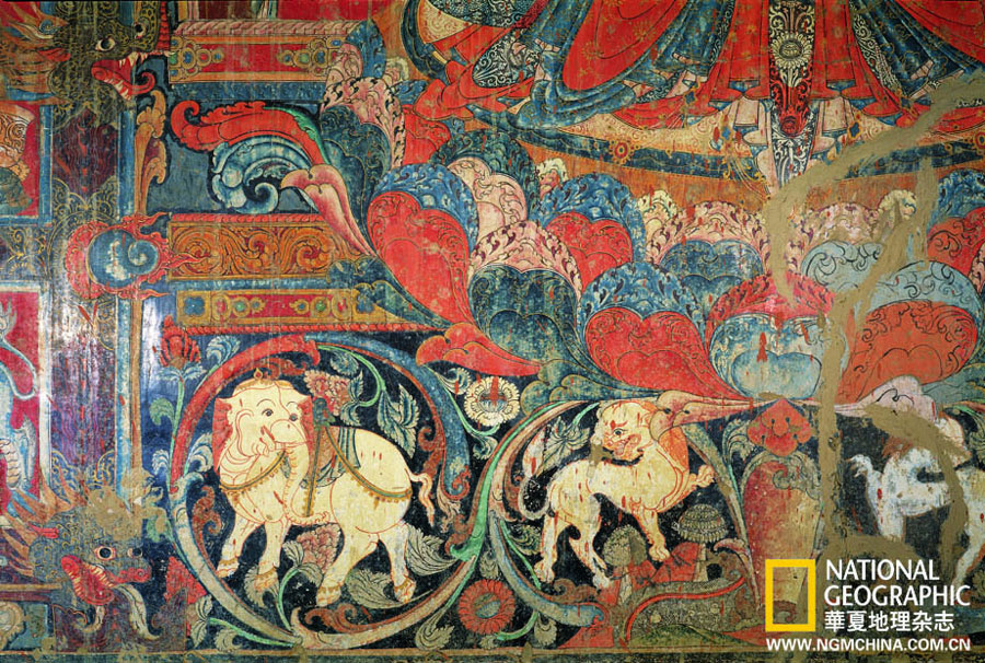 Buddhist murals painted on the wall inside the Toling Monastery [Photo/China Tibet Online]