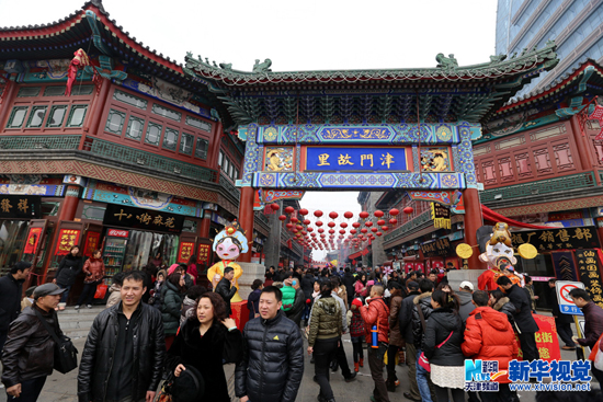 The Ancient Culture Street is a pedestrian business street on the western bank of the Hai River in Nankai District, Tianjin. The architecture there was constructed in Qing Dynasty-style and the street itself was opened to the public in 1986. it looks like a work of art.