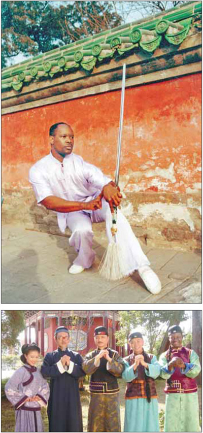 From top: Luc Bendza practices the Chinese martial arts with a sword. Bendza shows up in a TV series in traditional Chinese costume. Photos Provided to China Daily