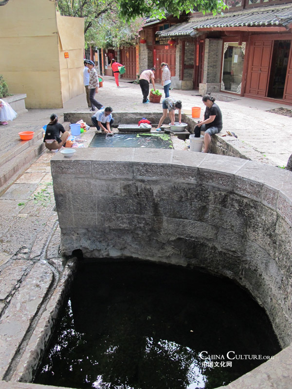 Residents of Dayan old town of Lijiang, Yunnan province, are washing vegetables and clothes by the Sanyan Well . [photo by Yang Qi/chinaculture.org]