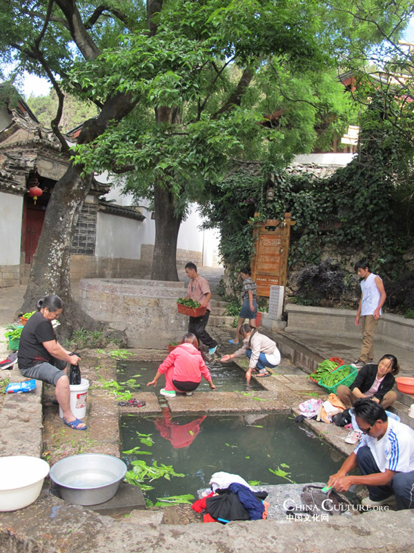 Residents of Dayan old town of Lijiang, Yunnan province, are washing vegetables and clothes by the Sanyan Well . [photo by Yang Qi/chinaculture.org]