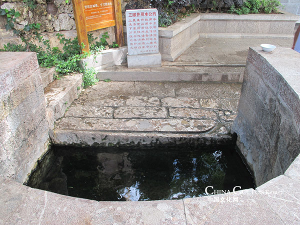 A stone sign engraved with words of " Sanyan Well Water Using Convention" stands by the well. [photo by Yang Qi/chinaculture.org]