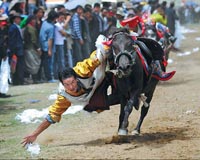Devotees worship a huge Buddha portrait after unfolding it during the annual religious ritual in the Gandan Temple in Lhasa, capital of Southwest China's Tibet autonomous region, July 22, 2013. Founded in 1409 by followers of Zong Kaba, founder of the Yellow Sect of Tibetan Buddhism, the Gandan Temple is the oldest among lamaseries of the Yellow Sect. [Photo/Xinhua]