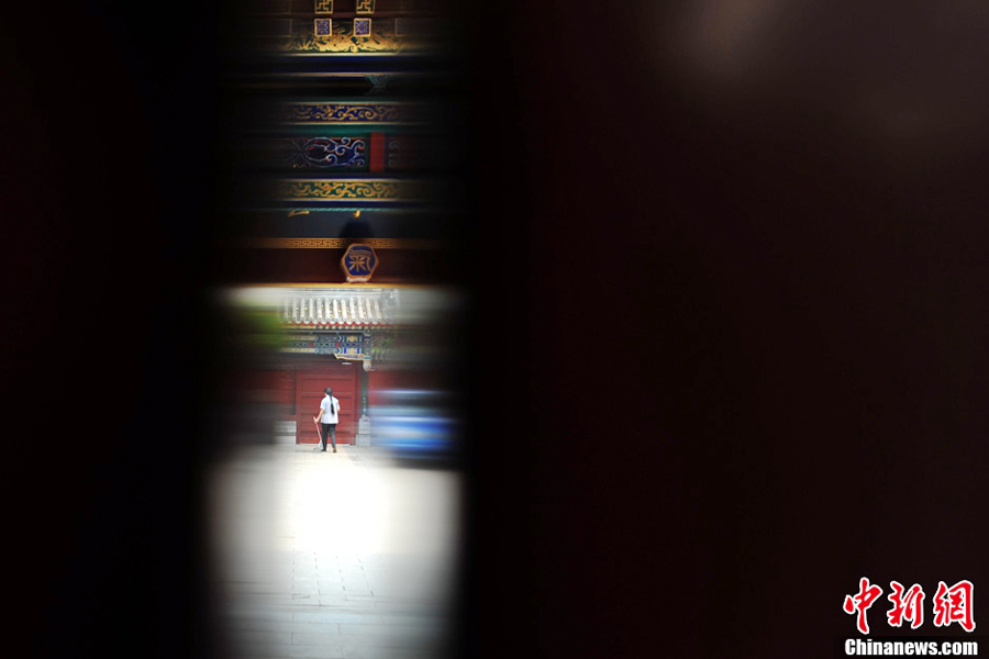 There are only a few of people in the temple in daylight, but cleaners can be seen cleaning the yard. (CNS/Jin Shuo)