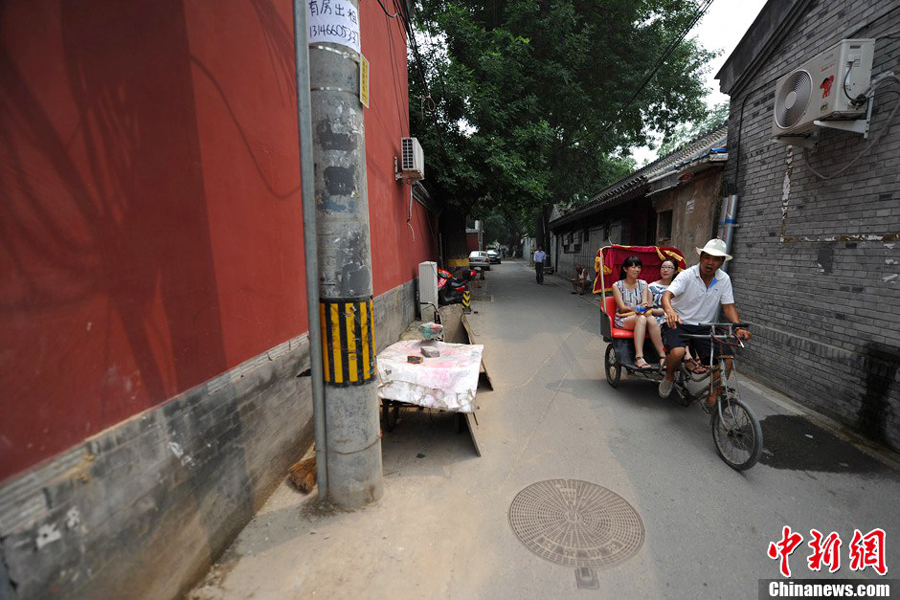Tourists on a tricycle pass by the ancient temple. (CNS/Jin Shuo)