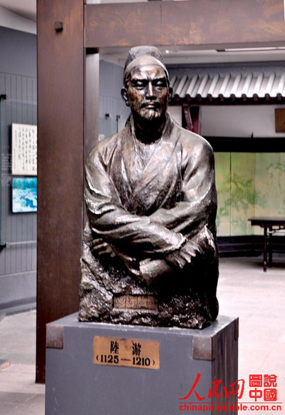 Photo shows a statue of Lu You, one of the greatest patriotic poets in ancient China. (Chinapic.people.com.cn)