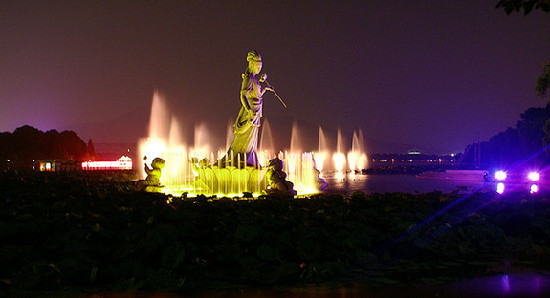 After the kingdom fell, Xi was sent back to the King of Wu but the queen was jealous and ordered her killed. She was tied to a rock and thrown into a lake. People said she became the immortal Lotus Fairy, lived on a small island and joined the lotus seed-picking girls every summer.