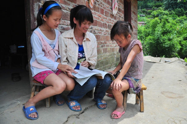 Comments Print Mail Large Medium Small Zhao Xianyan teaches her two nieces with her textbook at home. Mo Jinmei / For China Daily