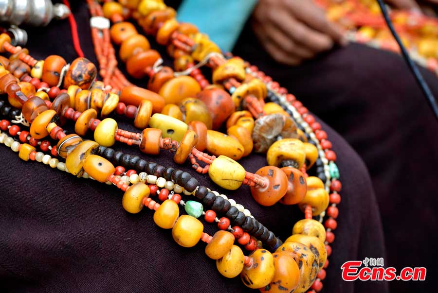 Decorations on the traditional 'peacock costume'.(CNS/Li Lin)
