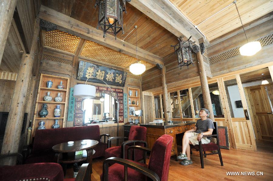 Photo taken on Aug. 5, 2013 shows the interior of a renovated ancient building at the Xiuli studio village of Yixian County in Huangshan City, east China's Anhui Province. Now 87 ancient buildings have been renovated or rebuilt there in a bid to protect and restore the historical interests and enliven the former scenes of local residents' life. (Xinhua/Li Xiaoguo)