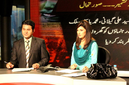 Anchors prepare for a live newscast at Pakistan Television, the national broadcaster. News channels face fierce competition in the thriving Pakistani television market.