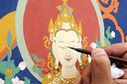 "Different Tangka painters may have different styles. Teacher Tseden’s painting is a combination of traditional and modern representations. He uses simple but delicate patterns and lines to show the Buddha’s wisdom and kindness." Lopsang Tenzin Tangka Painter said.