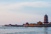 Master Bai Yihai (R) and his follower present martial arts during a martial arts festival at the Tianshan Mountain scenic area in Fukang City, northwest China's Xinjiang Uygur Autonomous Region, Aug. 7, 2013. (Xinhua/Wang Fei)