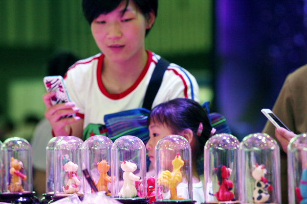 A woman enjoys looking at the various dough figurines at the Nanjing International Expo Centre on August 11, 2013. [Photo/Asianewsphoto]