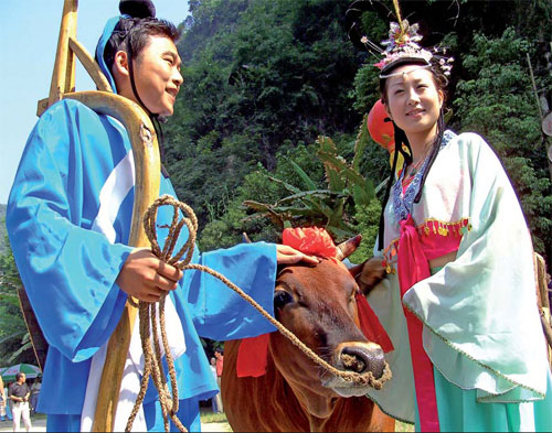 The 2,000-year-old Qixi festival originated from a folk tale that a fairy called Zhi Nv married a mortal called Niu Lang.