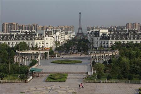 A community resembles Paris style in building up an “Eiffel Tower”. It is not only the architectures that Chinese real estate agents start to imitate, but also the whole style of the city. To attract better off customers, a community in Hangzhou, Zhejiang imitates the whole style of a Paris-like residential community.[Photo/Xinhua]