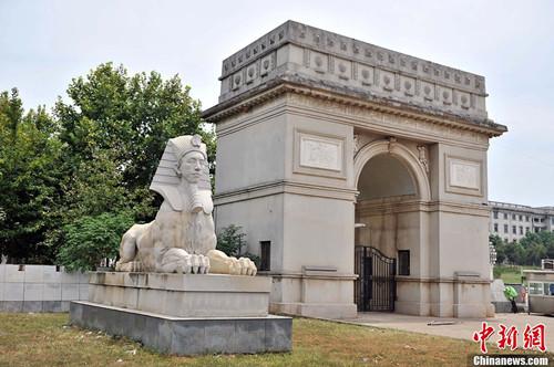 Copycat architectures in a college in Wuhan. You can spot Pyramids, Sphinx, Greek gods sculptures, the Arc de Triomphe and the United States Capitol, but do not be confused, this is not a World Park, but a vocational school campus in Wuhan.[Photo/Chinanews.com]