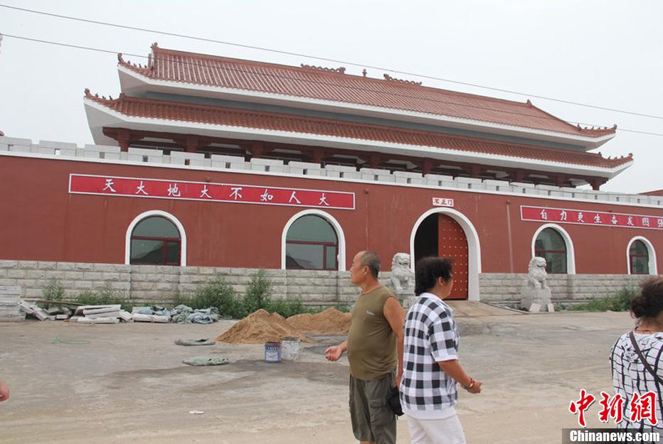 Copycat Tiananmen Square in Liaoning. With a palace-similar roof and two marble pillars, this building in Suizhong, Liaoning can hardly not be relate to the Tiananmen Square in Beijing.[Photo/Chinanews.com]