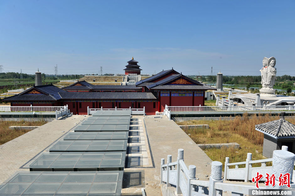 Wuhan luxury cemetery building resembles the Temple of Heaven in Beijing. The main architecture of Wuhan luxury cemetery is surrounded by rivers and mountains in the Xinzhou district of Wu han city, and the whole sense of majesty strongly reminds people of the Temple of Heaven in Beijing. [Photo/Chinanews.com]